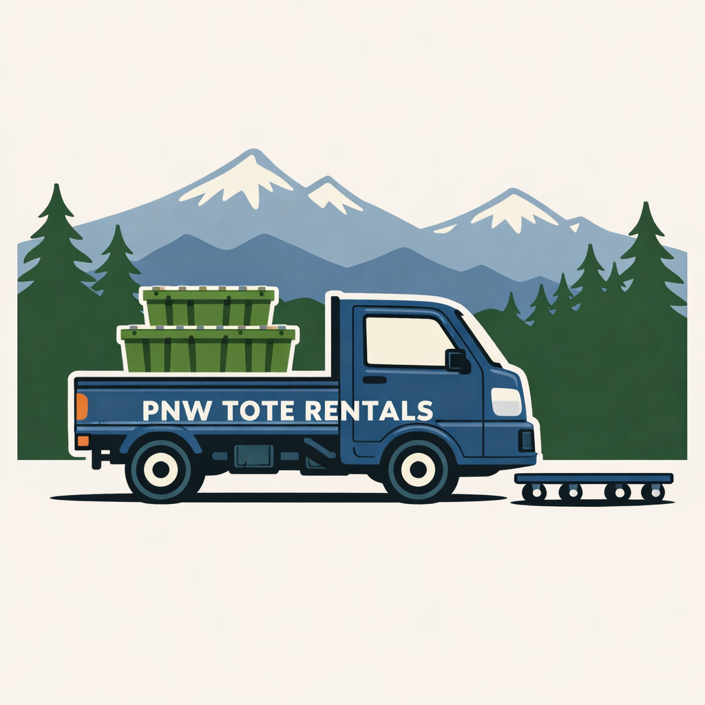 Your totes and dolly arrive clean and ready at your door — free delivery throughout greater Seattle.